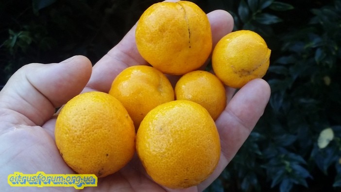 Плоды созревают за 2-3 месяца. Их размер варьирует от примерно как у Маруми до размера небольшого клементина.