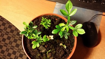 Сейчас, через месяц, видно насколько они разные, хотя большинство дало уже по 6-7 листьев.