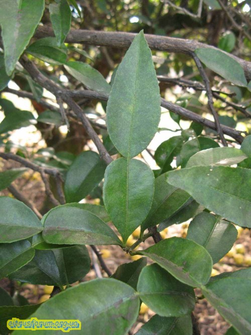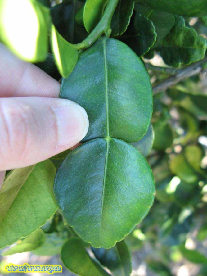 У кафир лайма округлые кончики листьев, а здесь острые. И потом, плоды сладкие...