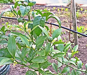 Привитый Томасвилл имеет плодики и цветут во второй раз. Другой 3-летний сеянец расцветает. Мне рад.