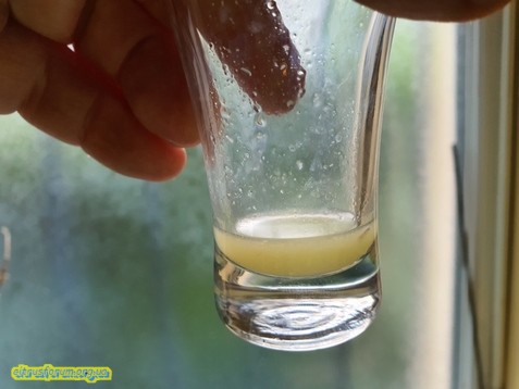 Он только слегка горьковат, ароматный, кислит, но меньше чем сок лимона, сахаров много - 13° Brix