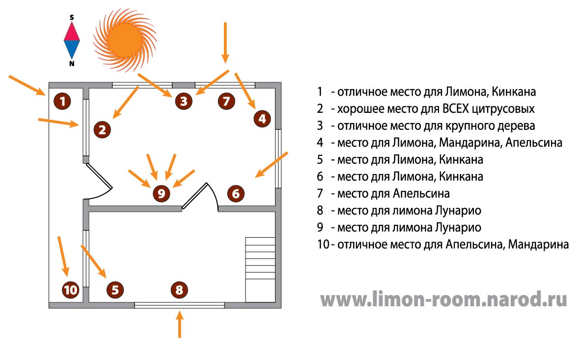 В теме "как выбирать саженцы цитрусовых" понравилась картинка с рекомендуемым размещением цитрусовых в зависимости от расположения окон. Попробую отрисовать для себя. Тут потом вставлю.