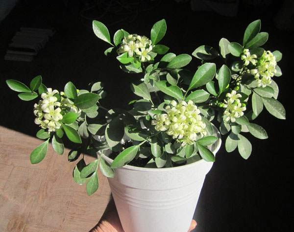 Уход: Мурайя предпочитает светлое и теплое место с высокой влажностью воздуха. Поэтому в теплых комнатах растения необходимо часто опрыскивать, однако лучше всего мурайя растет в закрытых «цветочных окнах». На лето растения можно вынести на свежий воздух, размещая в защищенном от ветра месте. Зимой, когда мурайю содержат в прохладных условиях, полив умеренный. Весной растения пересаживают в легкую, хорошо водопроницаемую, смешанную с компостом почву. С начала лета мурайю необходимо еженедельно подкармливать полным удобрением для комнатных цветов.