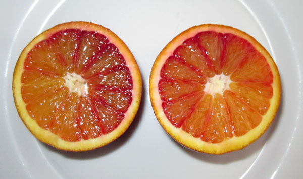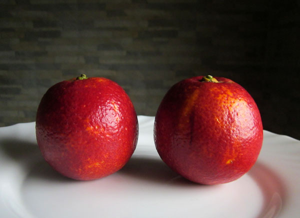 Я думаю, что это какой то сорт или из семейства Doblefina, или из Таrоkkо. По моему среди этих сортов кровавых апельсинов наиболее часто встречается овальная форма и присутствие шеи.