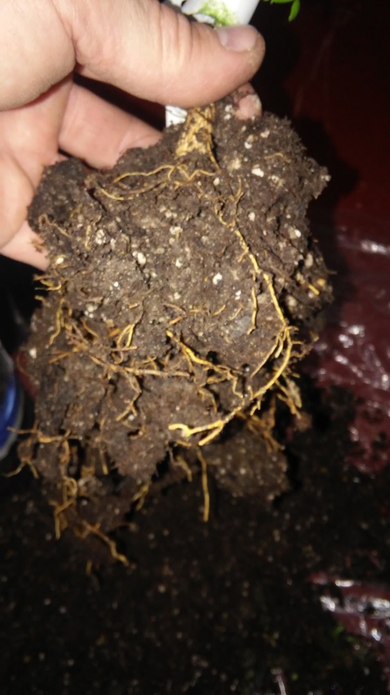 Чехи засунули в большой горшок растение с крошечной корневой, да и корневая на вид была не ахти. Пересадил в маленький горшок и пролил радифармом. Надеюсь на успех.
