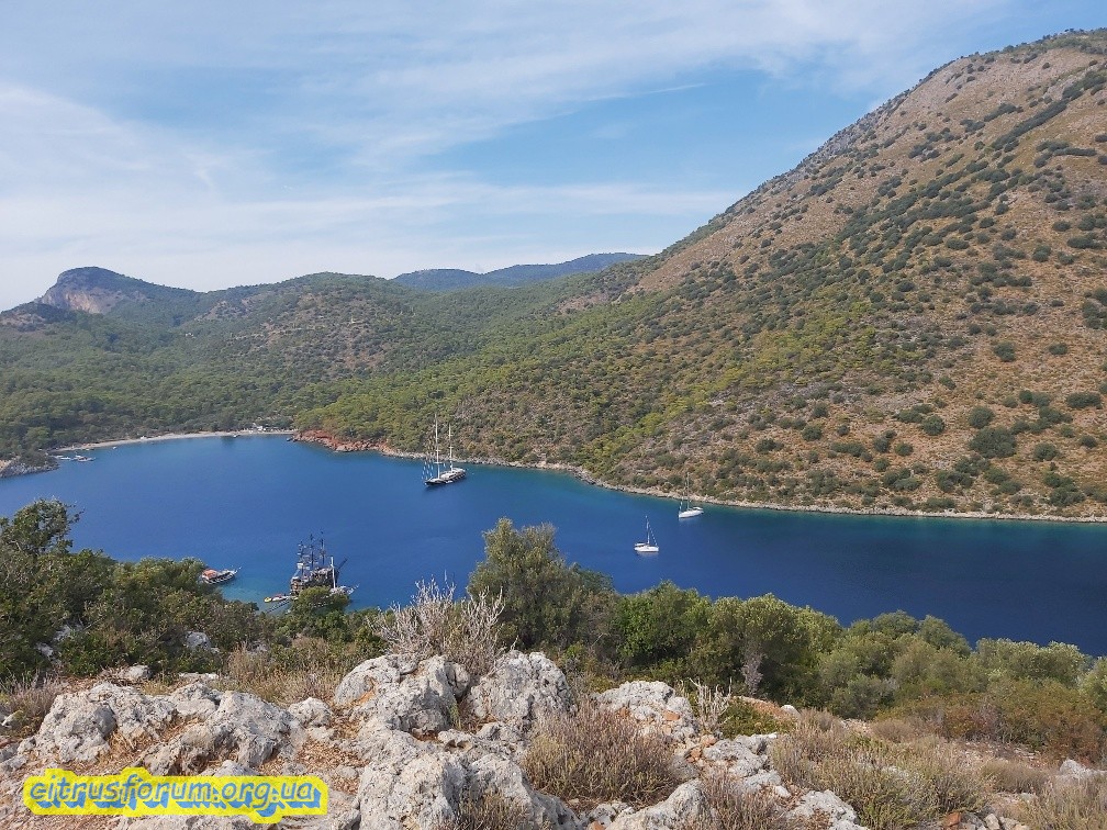 Всюди на узбережж від Гьочіка до Фетхіє(раніше Телмес) зустрічалися цитрусові плантації, в містах також цитрусові там на кожному кроці.