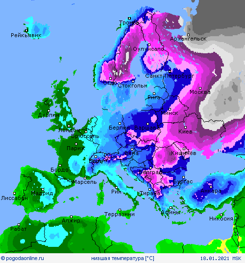 - це мінімальна температура. Там де рожеве це нижче -10С, де біле це нижче -20С