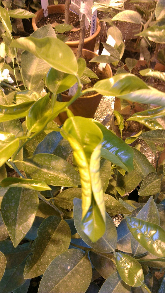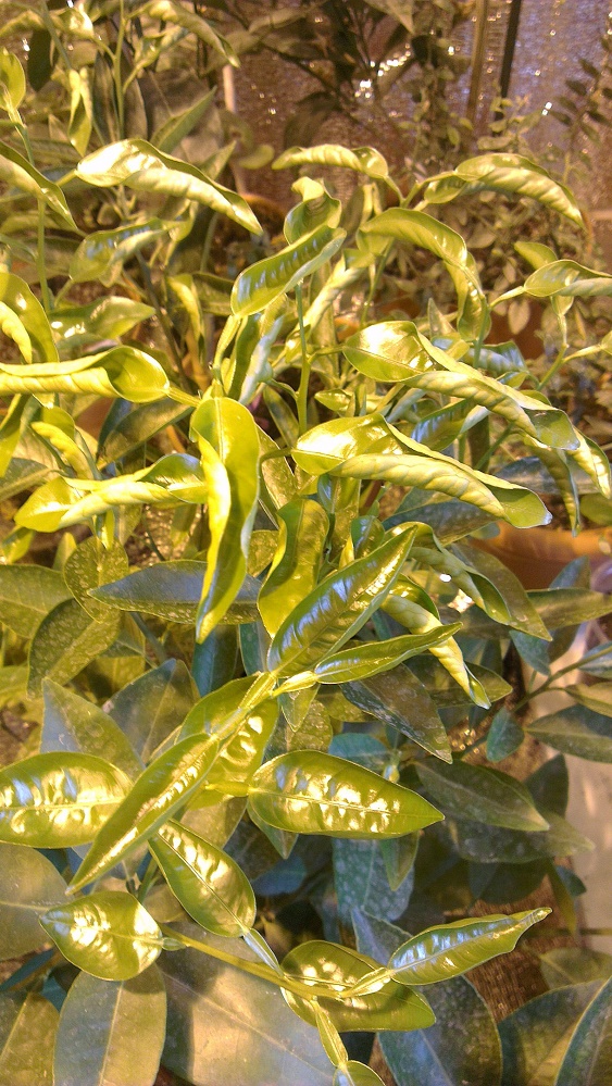 Наблюдал такое летом в жару, но сейчас и ни жара и не лето и света меньше. Самое интересное, что покрутило листья и у мандаринов и помело и лимонов, но не у всех. Одни дают нормальный прирост, другие вот такой. Все в одинаковых условиях, стоят рядом но кардинально отличаются. Полив умерееный, влажность около 70%, температура от 19 до 24. Подкормка была еще на улице. У кого какие есть идеи на этот счет?