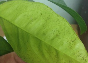 vikprint писал(а):Подарили лимон из косточки. Дереву 5-7 лет. На листьях маленькие точки, похожие на яйца насекомых или грибок. Помогите пожалуйста найти причину и лечение. На молодых листьях нет. только на прошлогодних.