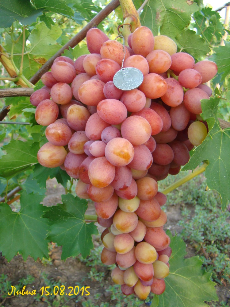 О Ливии много писано-переписано, но для меня это один из лучших на сегодня сортов и по урожайности и по виду и по вкусу. Мускат в ней конечно выражен не очень сильно и только при хорошем вызревании. Но это при прочих качествах не очень существенно.