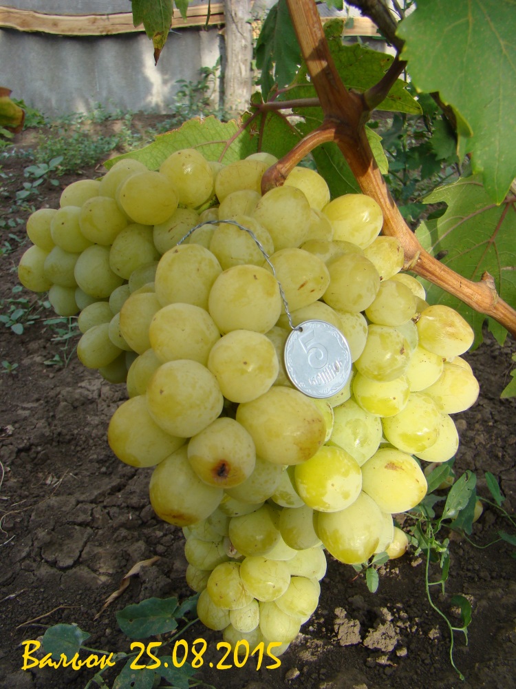 Очень яркий мускат имеет Валёк. Я б даже сказал резковатый, но это на любителя. И грозди у меня получились плотноватые, но это первое плодоношениен. Будем посмотреть, что будет дальше.