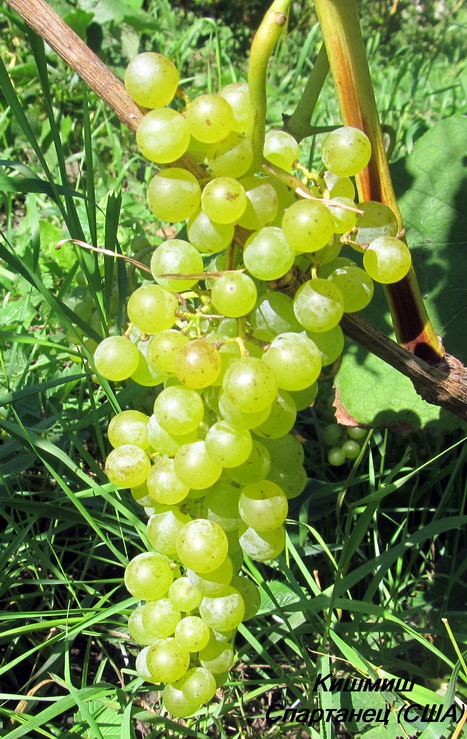 У нас в этом году виноград дозревает с большим опозданием, в т.ч. и кишмиши. Сегодня пробовали кишмиш сорт Спартанец (США). Лично мне больше всего в нем нравится без проблемность: болезни его практически не затронули, не потрескался от дождей и гроздь полненькая, правильной формы. Если его и правда можно не укрывать на зиму, так как сорт выдерживает большие морозы (до - 34 С), тогда растение вообще замечательное (лично я морозоустойчивость не проверял, так как укрывал его в предыдущие зимы вмести с другим виноградом). По поводу вкуса, то емко описать я его не могу: приятный, виноградный, сладенький, не приторный, косточки-рудименты мне не попадались.
