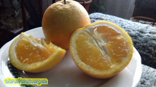 Хорошый размер и структура плода( ароматная цедра, не толстое альбедо, тончайшие перегородки), косточек было 1-2 на плод.
