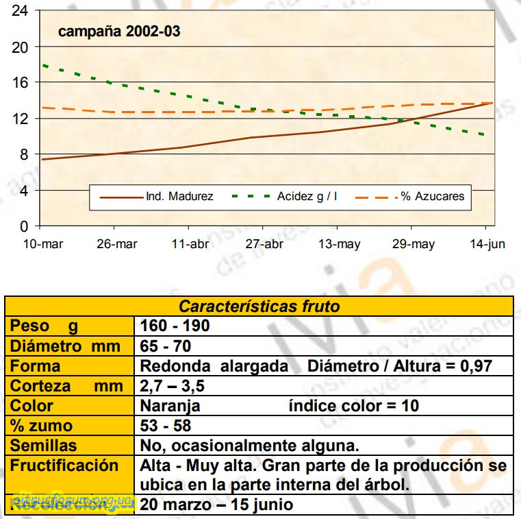 Дуже врожайний сорт, значна частина плодів розташована у внутрішній частині дерева, швидкий вступ у виробництво, насіння дуже рідко, хоча з дрібними плодами. Мало чутливий до «clareta» (зморщини або опуклості) на шкірці.