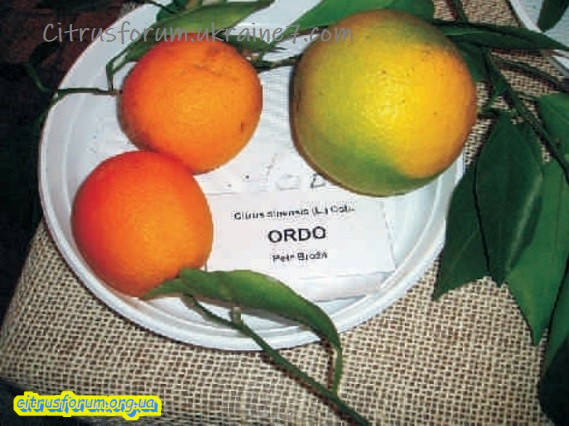 Citrus sinensis Ordo. Пізній сорт, дерево швидкоросле має небагато шипів, стійке до багатьох вірусів і шкідників. Плоди досить великих розмірів і має смачну, соковиту, м’якоть апельсина.