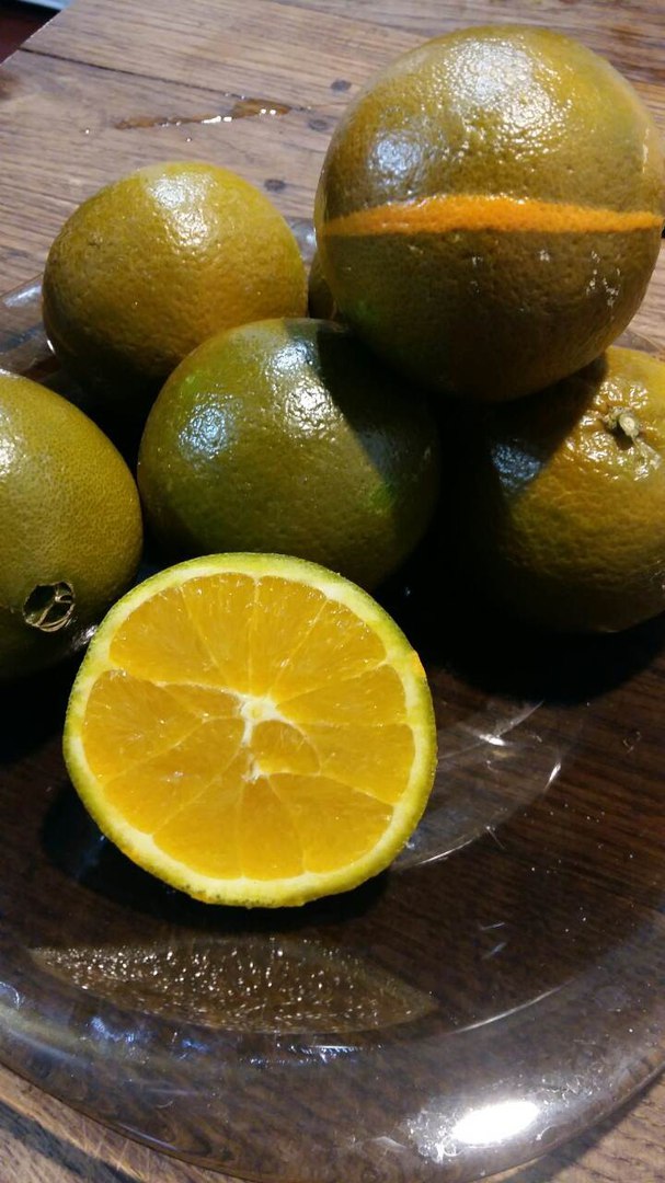Вот у меня, для сравнения цвета, рядом лимон и клементин.