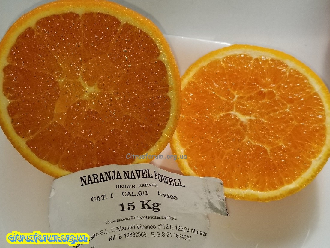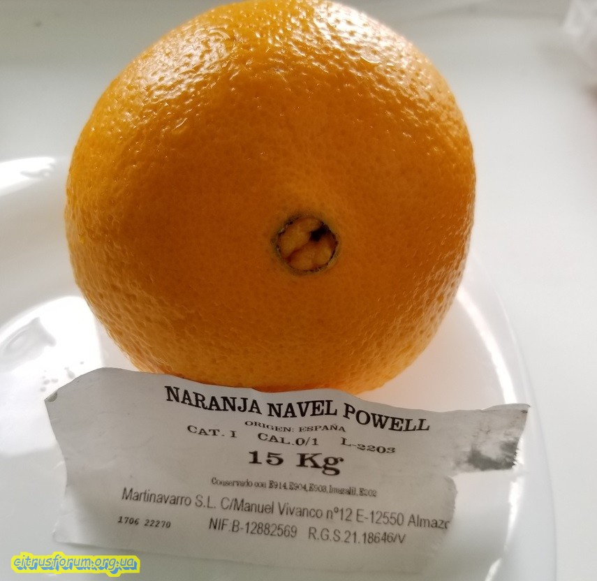 Powell апельсин. Дуже солодкий, без кислинки, сегменти не відчуваються. Смак схожий на Washington і Navelina.