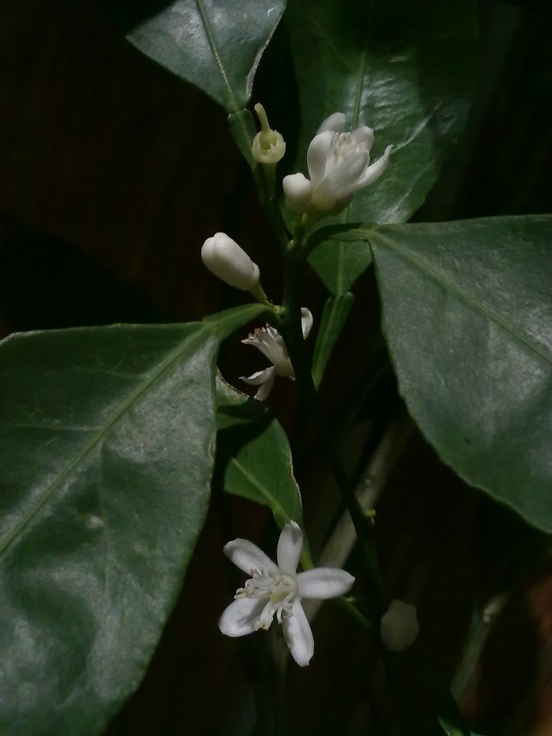 Цветы: среднего размера (2-3 см), белые, запах сладко-терпкий, интенсивный.