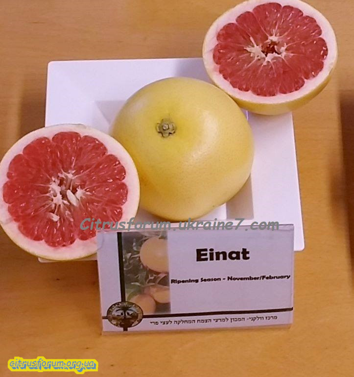 "Einat" (Ейнат) рожевий грейпфрут - гібрид Hudson Tetrafluoride з помело, який не кислий на смак. Цей сорт грейпфрута дозріває в період з жовтня по січень і зберігає свій внутрішній рожевий колір (лікопен) протягом усього сезону. Він містить 11,5% цукру і його сегменти без кісточок. Що робить цей грейпфрут унікальним - це відсутність кислинки.