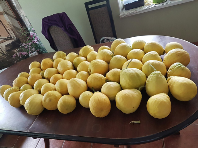 Общий вес не знаю, не взвешивала. Это не весь урожай, ещё 15 на дереве, несколько шт использовали для приготовления лимончеллы, несколько шт пошло на подарки. Ну конечно это результат ОГ.