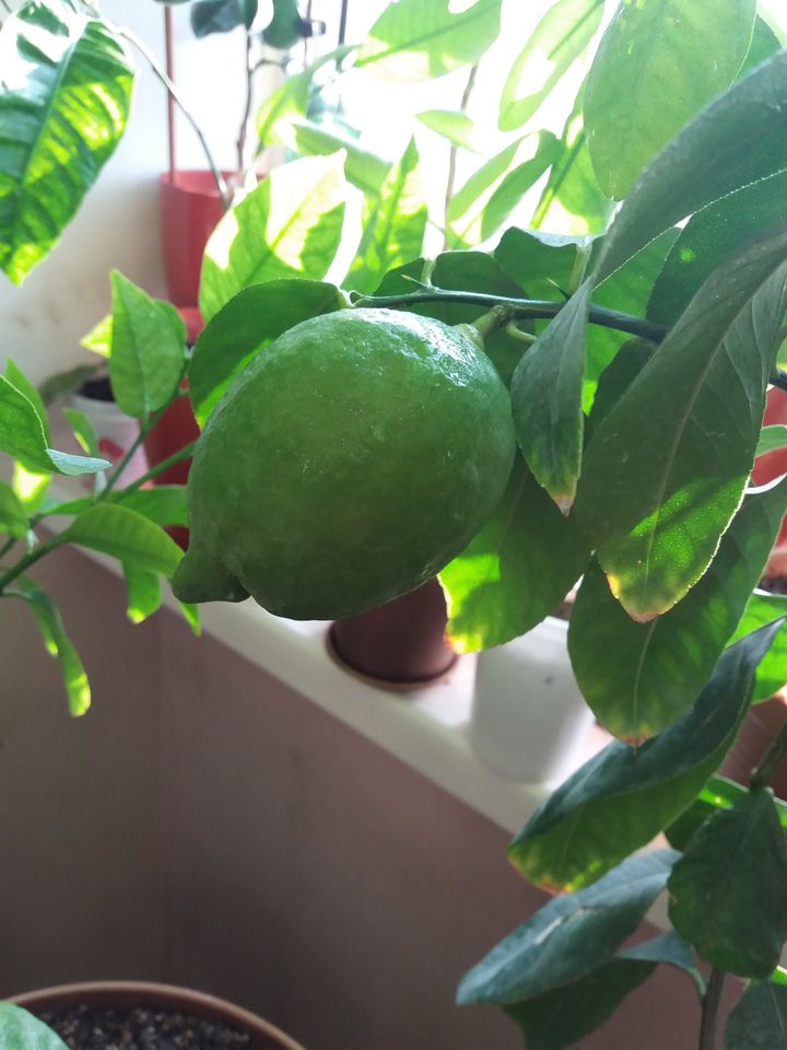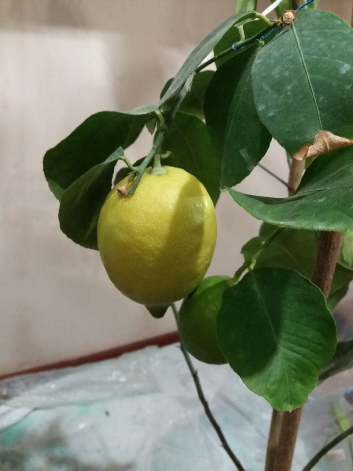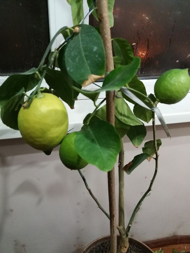 Citrus limon "DORSHAPO" - чех, первая и вторая волна плодоношения. Дерево действительно энергичное, в моих балконных условиях фиолетового цвета на побегах и цветах не наблюдала. Дает 3-4 цветка, завязывает, но через время частично сбрасывает, сейчас растет плод от первого цветения и 2 завязи от второго.