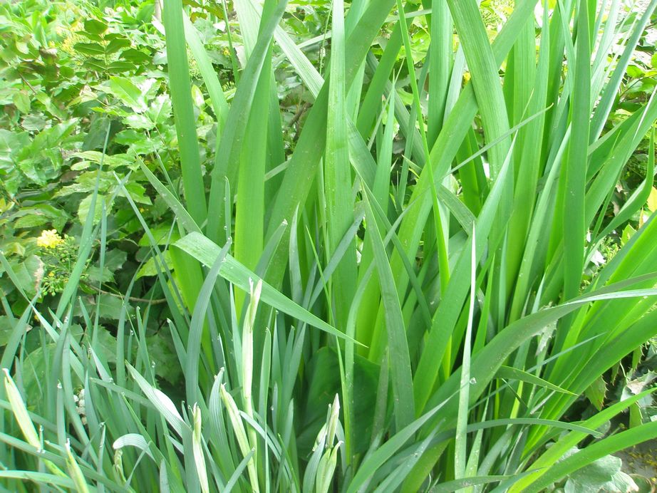По мере зацветания буду выкладывать фото. Пока только листья для сравнения. Вверху ирис жёлтый или болотный его ещё называют (он более высокий). У меня он и без болота растёт - просто его немного надо поливать в отличии от ириса с широкими листьями, который как суккулент растёт.