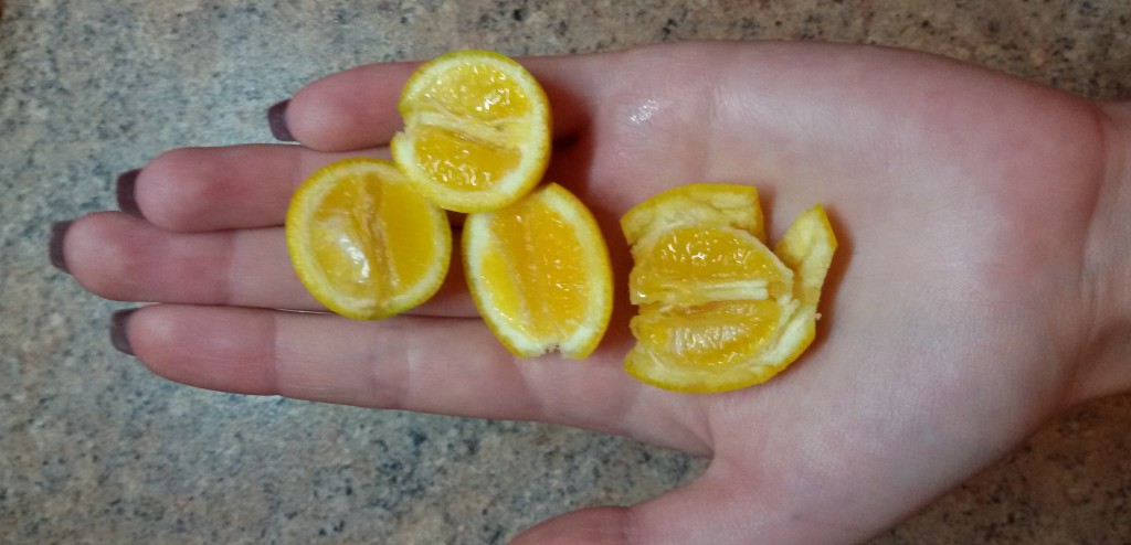 Вкус меня просто шокировал – сладкая кожура и приятного кисло-сладкая мякоть. И что самое интересное, как видно на фото, плоды были бессемянными. Также замечу что плоды созревали на юго-западном окне, а последние два месяца солнца практически не было.