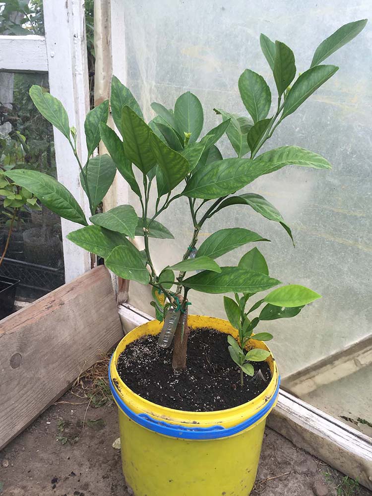 Мені подарували апельсин сіянець, він був 1.70м. висоти. Я ледь його впихнув у цей "патріотичний горшок"