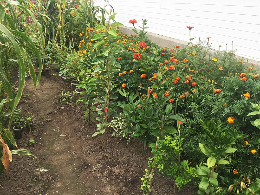 Висадка цитрусів на літо у відкритий грунт, здавалась дуже ризикована справа. Думав, що будуть проблеми з шкідниками, поливом, кислотністю грунту, град та інш… Прочитавши досвід людей на форумах, я теж вирішив спробувати, але спочатку посадив ряд кукурудзи попкорм (получилася жива стінка, щоб трохи притінити цитрусові) Висадка проводилась кінець травня, зараз грядка виглядає ось так.