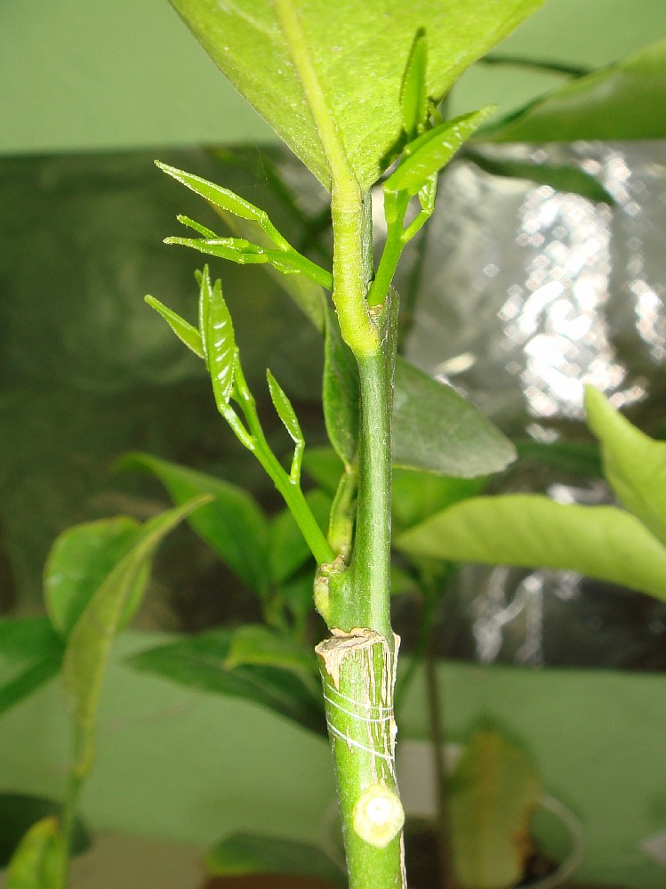 Это дерево меня радует своими темпами роста. На фото одно и то же место с разницей в 15 месяцев. сейчас толщина места прививки - 2 см. Подвой - дичек апельсина и он мне (как подвой) нравиться все больше и больше.