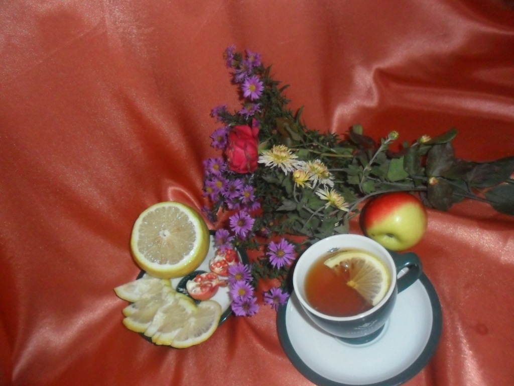 Сынуля , как настоящий мужчина, мне помогал.Всю фотосессию держал горшок с лимоном, от веса лимончика горшок так и норовил упасть :-) А доченька то яблочко тянула вкусить, то лимончик на зуб пыталась попробовать :ki_ss: