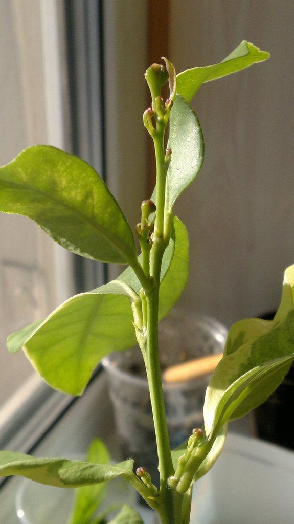 . Так вот, Мейва в таком же состоянии, что и месяц назад. Но отпало два листика (после усыхания) со средины ствола. Плодик завязался до залива, не растет (в отличии от плодов на других кумкватах). Подвой не прорастал. На всех остальных сортах, в т.ч. и с молодым приростом такой картины нет. Еще может быть, что горшок уже маловат.