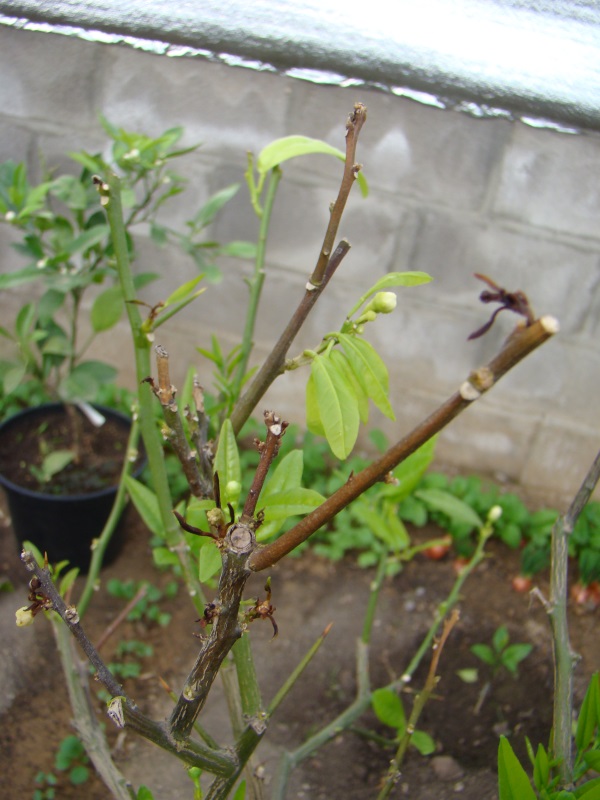 Это тот Россо, плоды которого покраснели в холодильнике. Приехал прошлой зимой, листьями покидался, но потом летом нормально отрос. Осенью занес его в теплицу и он сразу начал бросаться листвой, весной вроде начал отрастать и дальше - во так.