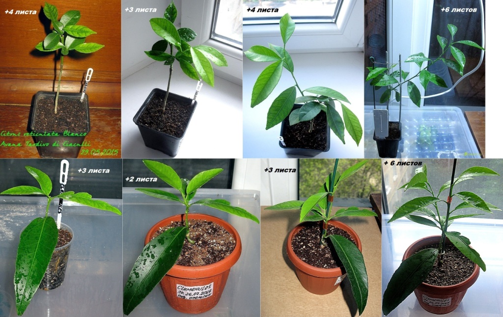 Доброго всем времени суток! Решил поделиться ещё одним экспериментом, который сегодня закончил последним кадром. Эксперимент длился год. Задача была выяснить разницу развития цитрусов на "спичечных" подвоях апельсинов и стандартных 2-х и более годичных подвоях, приходящих ко мне цитрусов, как правило на трифолиате или её гибриды. Т.е., узнать, на сколько справедливы утверждения о более долгом развитии цитрусов на тонком сеянце, нежели на стандартном. Сорта апельсинов не выяснялись, по причине бесполезности сего действа. Все сеянцы развивались в моих условиях на порядок лучше трифолиатных, причём не зависимо от гибрида. Теперь о выбранных подопечных. По скольку не было возможности выбора одинаковых подопытных, за основу были выбраны следующие параметры: количество волн роста, количество листьев и объём корневой системы. Были выбраны виды наиболее подходящие по количеству волн роста и соразмерным листьям. На верхнем ряду выбран мандарин C. deliciosa Tardivo di Ciaculli на трефе, нижний ярус клементин C. clementina Clemenules IVIA 22 на сеянце апельсина.