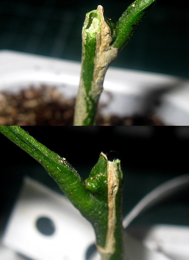Сегодня, пока был на даче, моя зверюга слегка прошлась по моим цитрусам. :wo)(ll: Пострадала только одна растюха, прививка мандарина Юбилейный.
