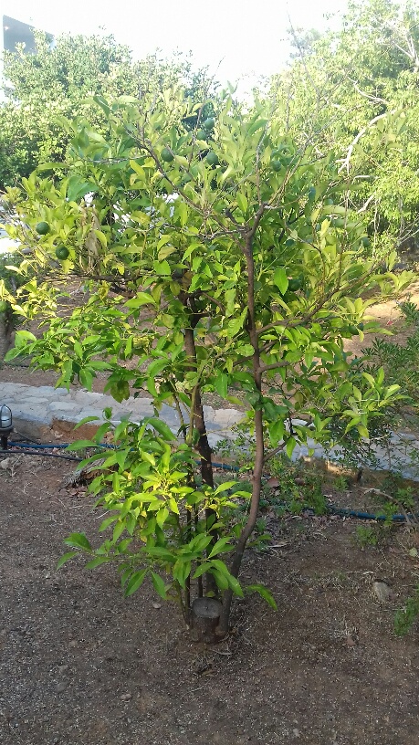 На Крите, и здесь в Елоунде в частности, конечно могут расти нормально цитрусовьІе. И я в нескольких частньІх дворах видел достойньІе єкземплярьІ. Вот например: