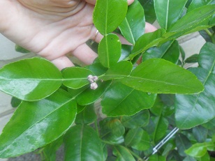 Лимон Пондероза зацвел в конце февраля и завязал два плодика :