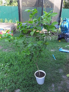 Каффир - лайм, прошлогодняя прививка на сеянец грейпфрута, забутонился в конце июня, в июле процвел, и завязал с десяток плодиков, оставила 4, а дальше пусть сам решает