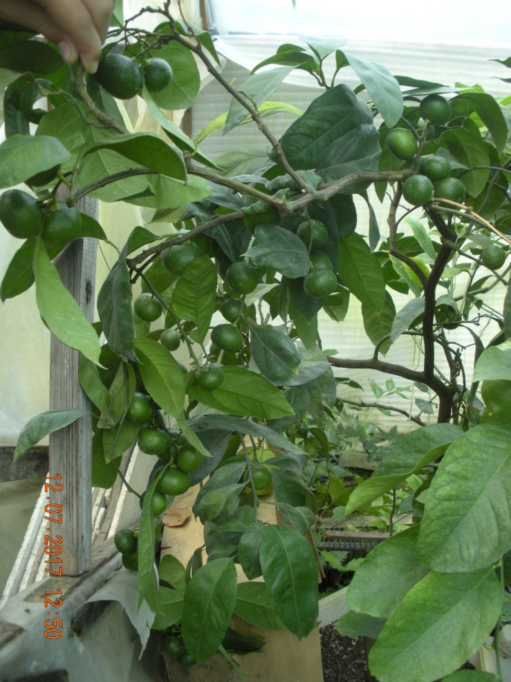 На днях сфоткал свой старый Уншиу широколистный. Это часть растения, целое не очень видно, так как закрыто другими. Не представляю, как он такой урожай выдержит,..Буду помогать, чем смогу