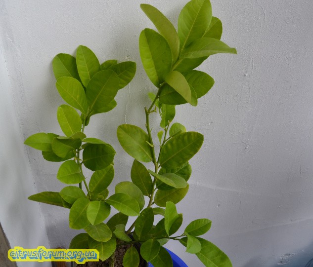 Я его только купил! У человека он стоял в теплице где светло. Кормит он их говорит, конским навозом перебродившим то есть нехватку азота можно исключить, а вот нехватка железа это как вариант. Материнское дерево у него нормального зеленого цвета, не салатового.