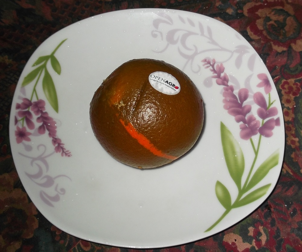 По цвету плод как будто на оранжевый апельсин нанесли сверху краску цвета темный хаки.