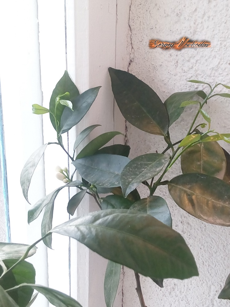 Сорвал последний плод Бигардии. Был жёлтый,а с появлением завязи снова стал зелёным! Провисел почти полтора года! Вот что интересно,что практически у всех плодах разный вкус. Этот на вкус как лайм,а запах напоминает и грейп и апельсин.