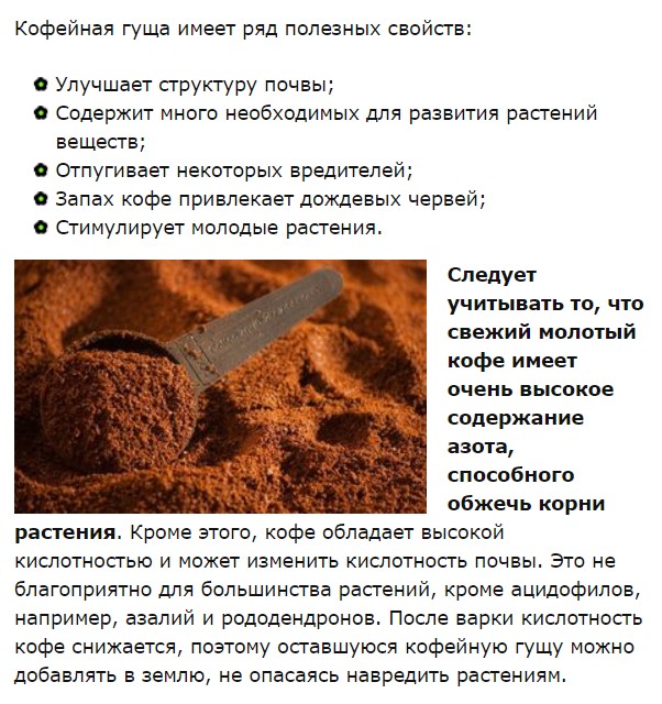 Stasik писал(а):Что даст кофейная гуща? Не будет ли она давать кислоту?