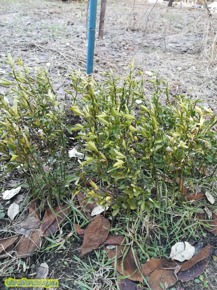 По состоянию на 17 февраля первый раз зимующие трифолиаты выглядят так (ниже фото). Держу за них кулачки, т.к. могут быть ещё всякие капризы природы.