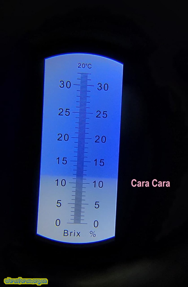 Cara Cara із ринку. Замір на брікс. 11.5% Без кислинки взгалі, но цукру не хватило. Мякоть відмінної структури.