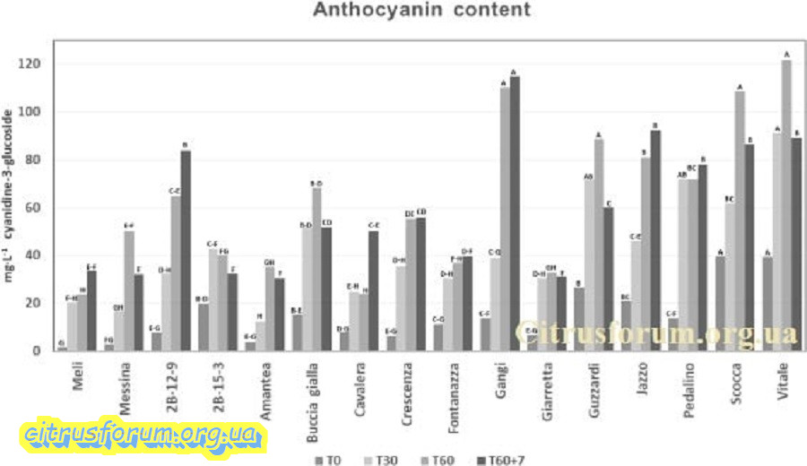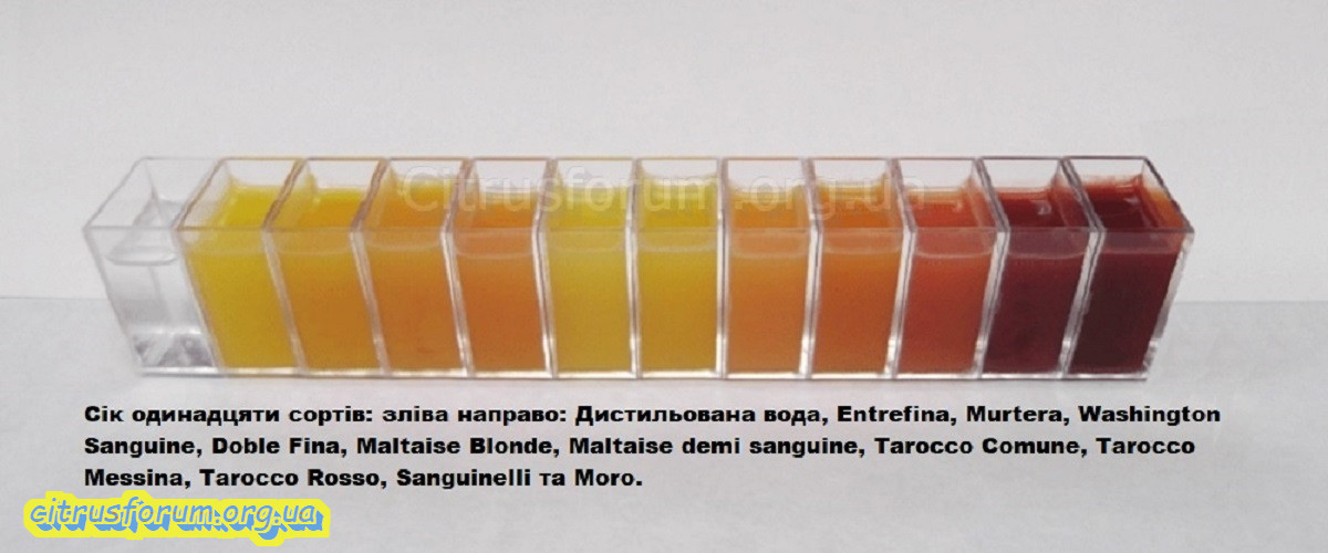 Я думаю, що зараз трохи неправильно було б так вважати, тому що: наша форумчанка Flo (Аліна) ділилась фото, чудовим результатом забарвленням в кривавих сортах, здається це були: Bream Tarocco, Moro, Smith Red Valencia на Macrophylla. Як бачимо на табл. накоплення антоціану щеплених на Macrophylla значно менше, у порівнянні з трилистними.
