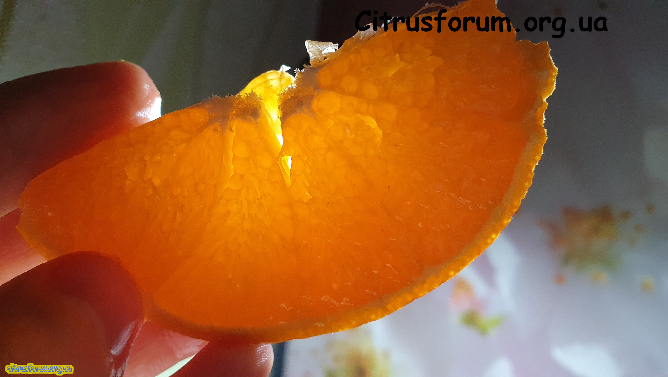Ось який він, 'Safor'. Подивіться, яка гарна структура м'якоті, на мій погляд нагадує тангор 'Ortanique'. Сік високоякісний. Далі буде...