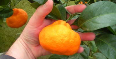 Через некоторое время появился мандарин. Он, больным и чахлым, но довольно крупным, был выменян на ящик других растений. Предыдущая хохяйка сказала, что муж привёз его из командировки с Кавказа. Думаю, что это обычный Уншиу широколистный. Может ошибаюсь? Вылечился и подрос, стал радовать плодами. В 2013 их было штук 30.