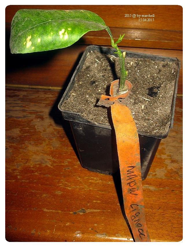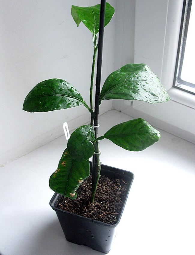 Далие грепфрут Marsh Seedless, этот никак не вычухается. Уже второй раз гонит побег, затем всё осыпается, кроме одного двух искарёженых листов. Подозреваю загвоздку с медью, либо фосфором. Пока в стадии усиленного присмотра.