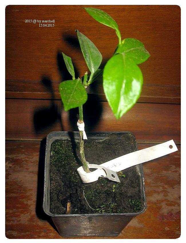 И так, в промежутках между домашними делами появилось время и я продолжу. На сей раз рассказ пойдёт о ранней апрельской поставке цитрусов. В этот раз, 3.04.2015-го пришло три цитруса. Первый, это вездесущая Ponderosa, пришедшая под именем Киевский крупноплодный. Пришёл этот цитрус как и остальные в горшке 0,7 л., в таком же тяжёлом грунте, с слишком светлым растущим молодым приростом, и так же без дренажа. Был заменён грунт и добавлен дренаж. В процессе адаптации на пару листах частично был потерян пигмент, причина так и осталась загадкой, хотя мысли по этому поводу имеются. Так же был потерян один нижний лист старого прироста, тоже причина не известна. А в целом цитрус показал вполне себе завидное развитие. За более, чем три месяца достиг полуметровой отметки, при этом дважды пытался цвести, чего конечно ему позволено не было. Фото до, и на сегодня: